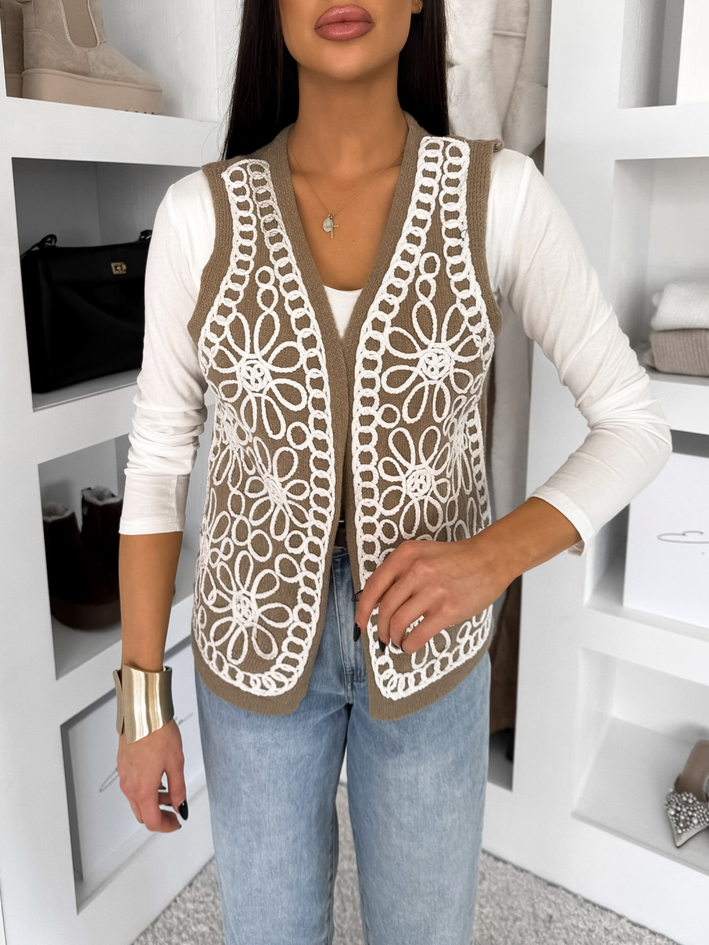 Hnědá krátká vestička CLEVE