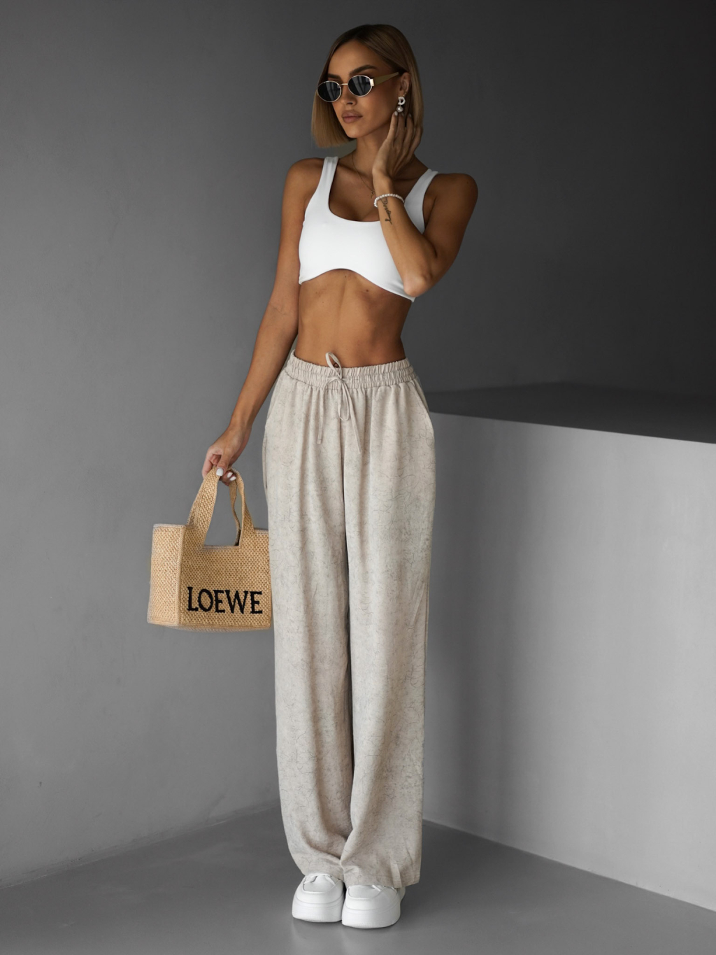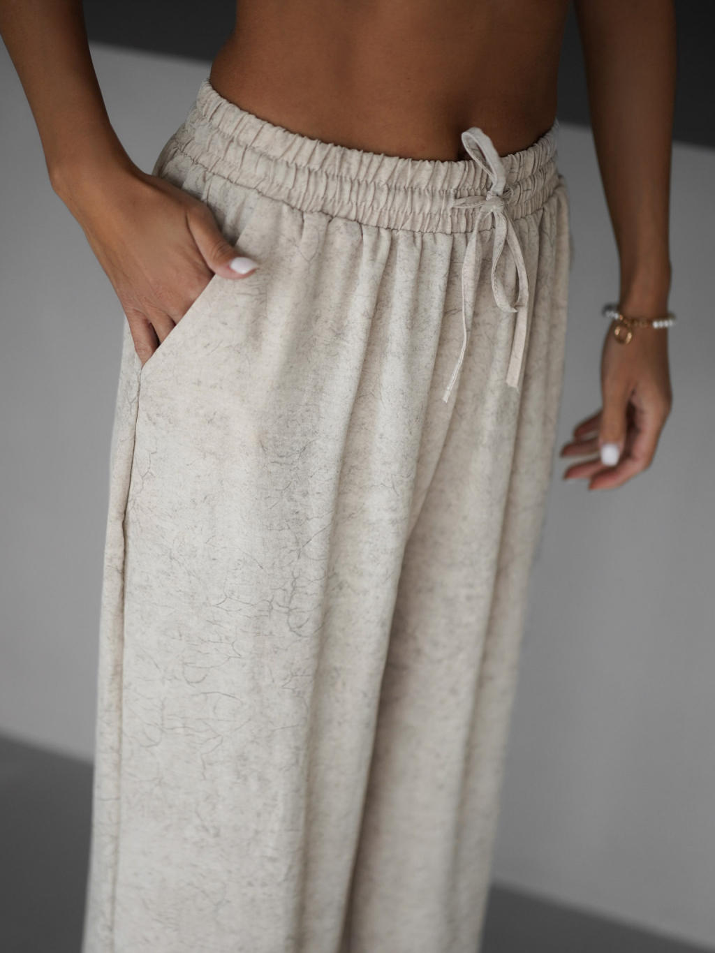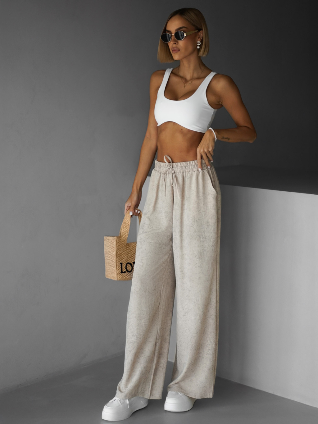 Béžové široké volné kalhoty BOETANA