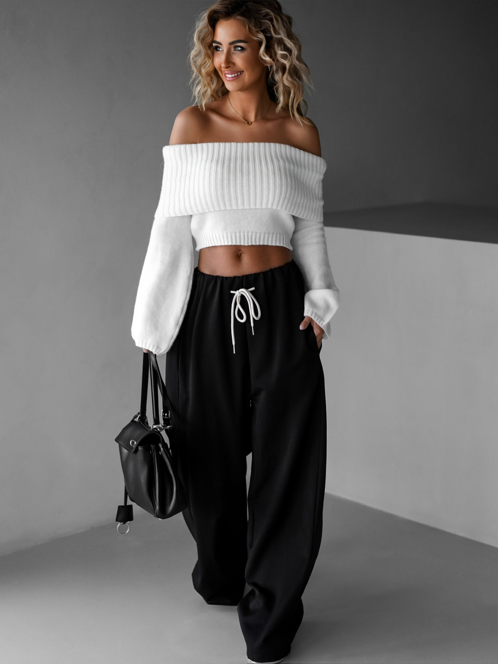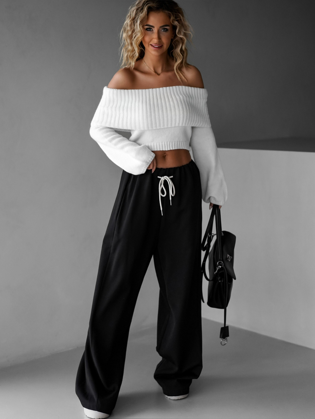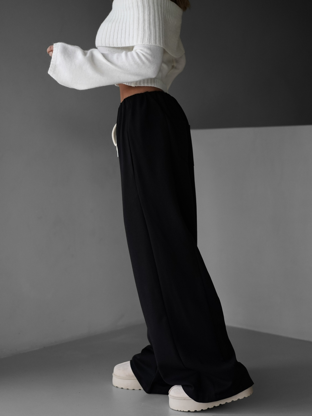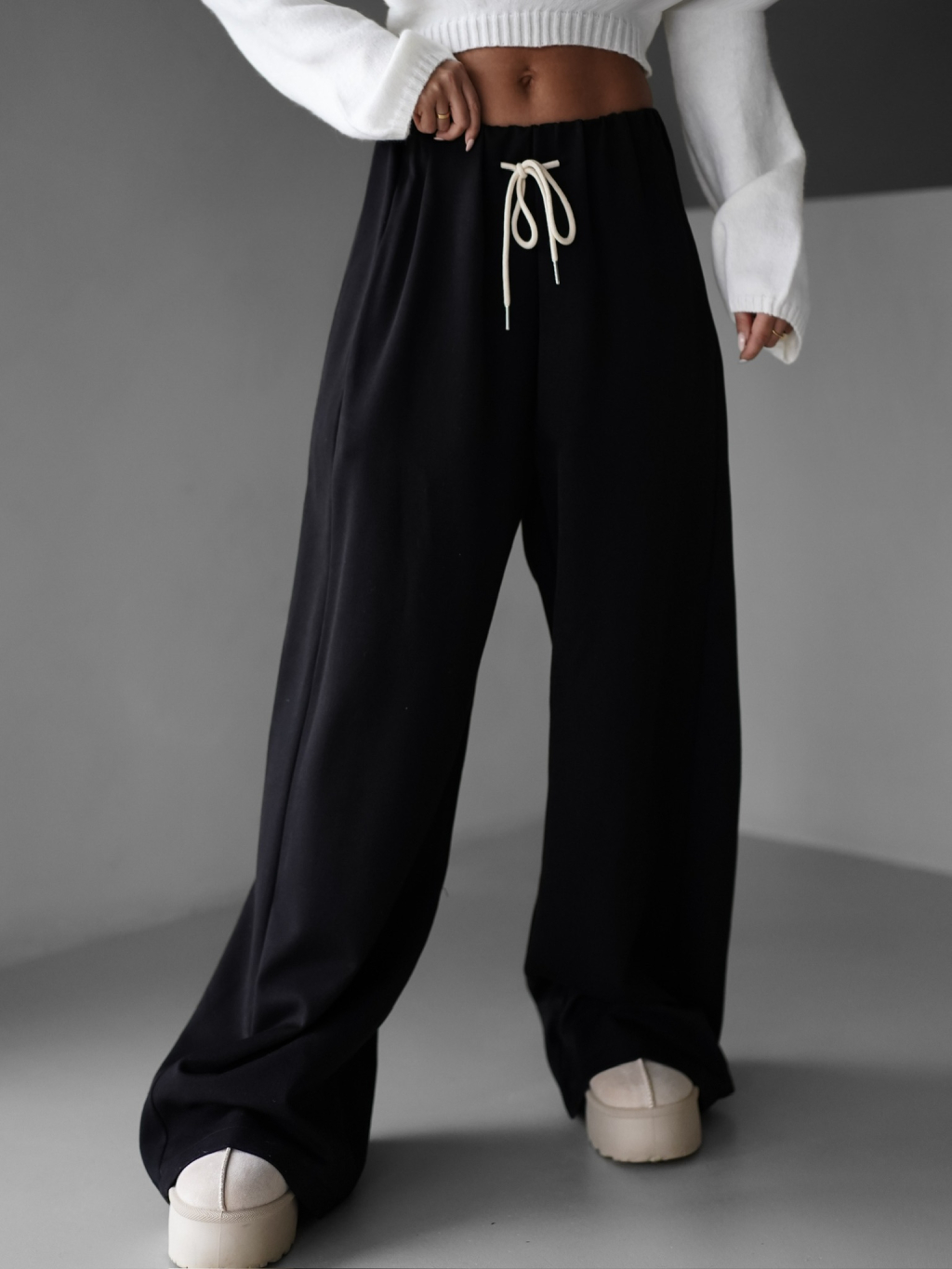 Černé elegantní široké kalhoty SOFIER s tkaničkou