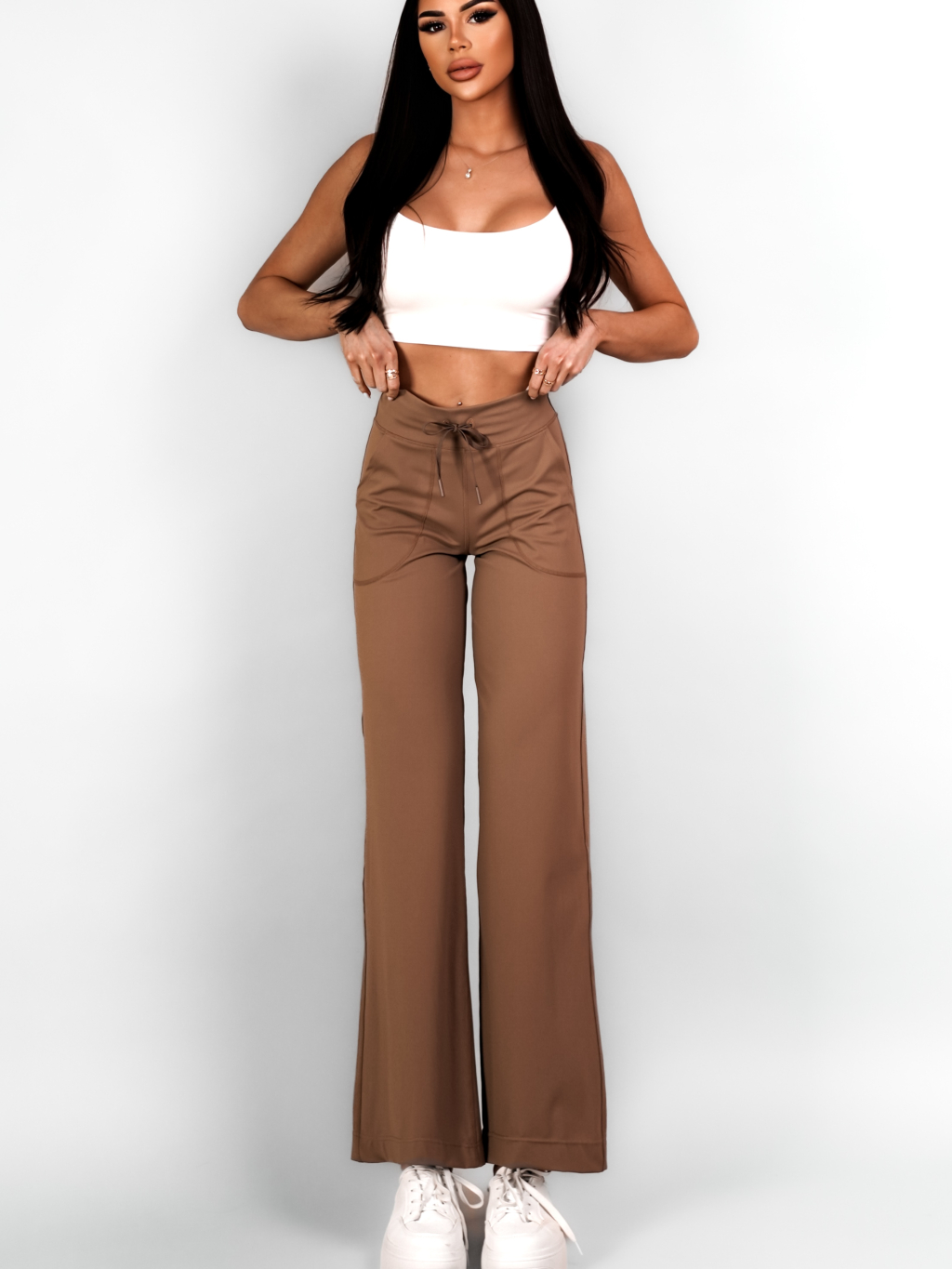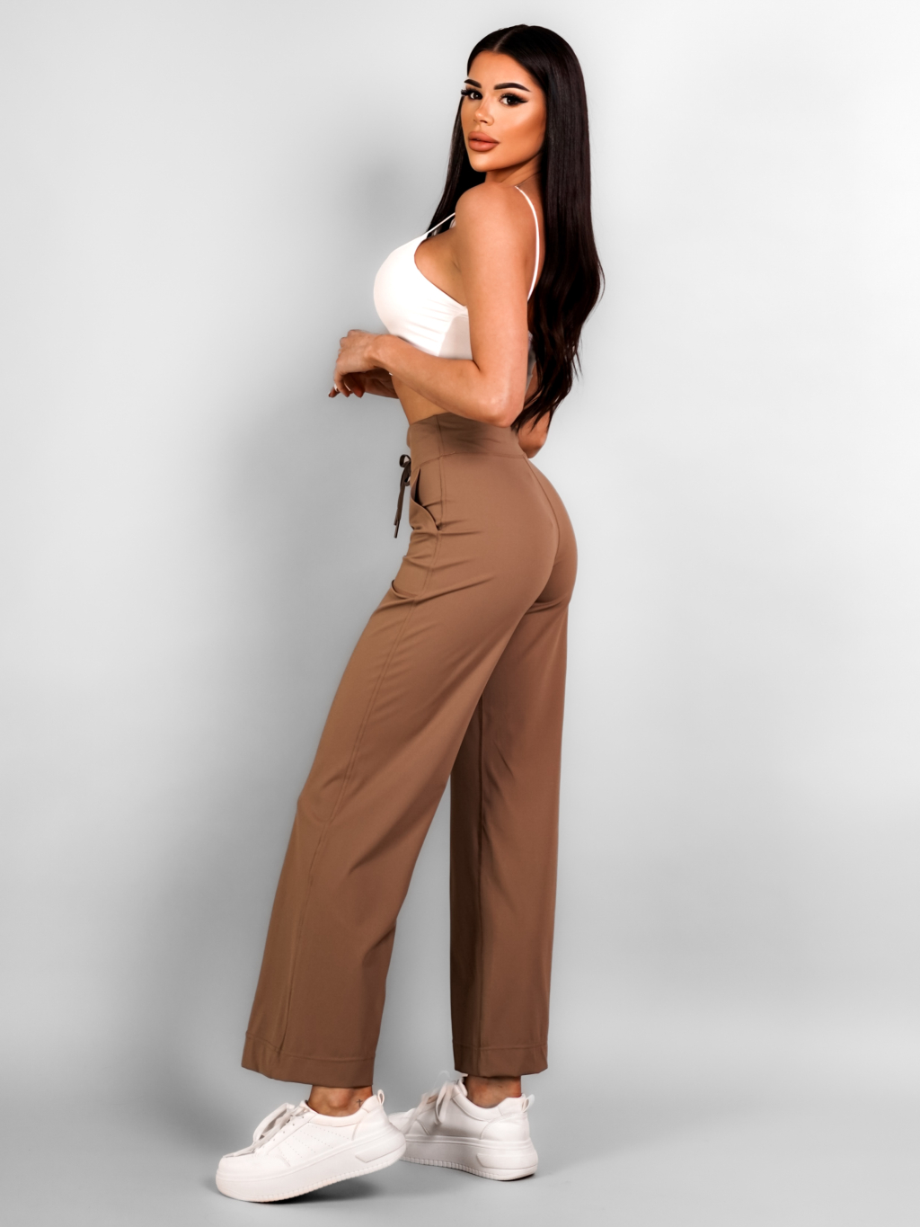 Hnědé basic široké stylové tepláky ALARICO