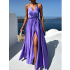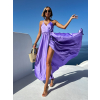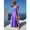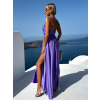 Levandulové dlouhé lesklé šaty PERFECTLY s výstřihem