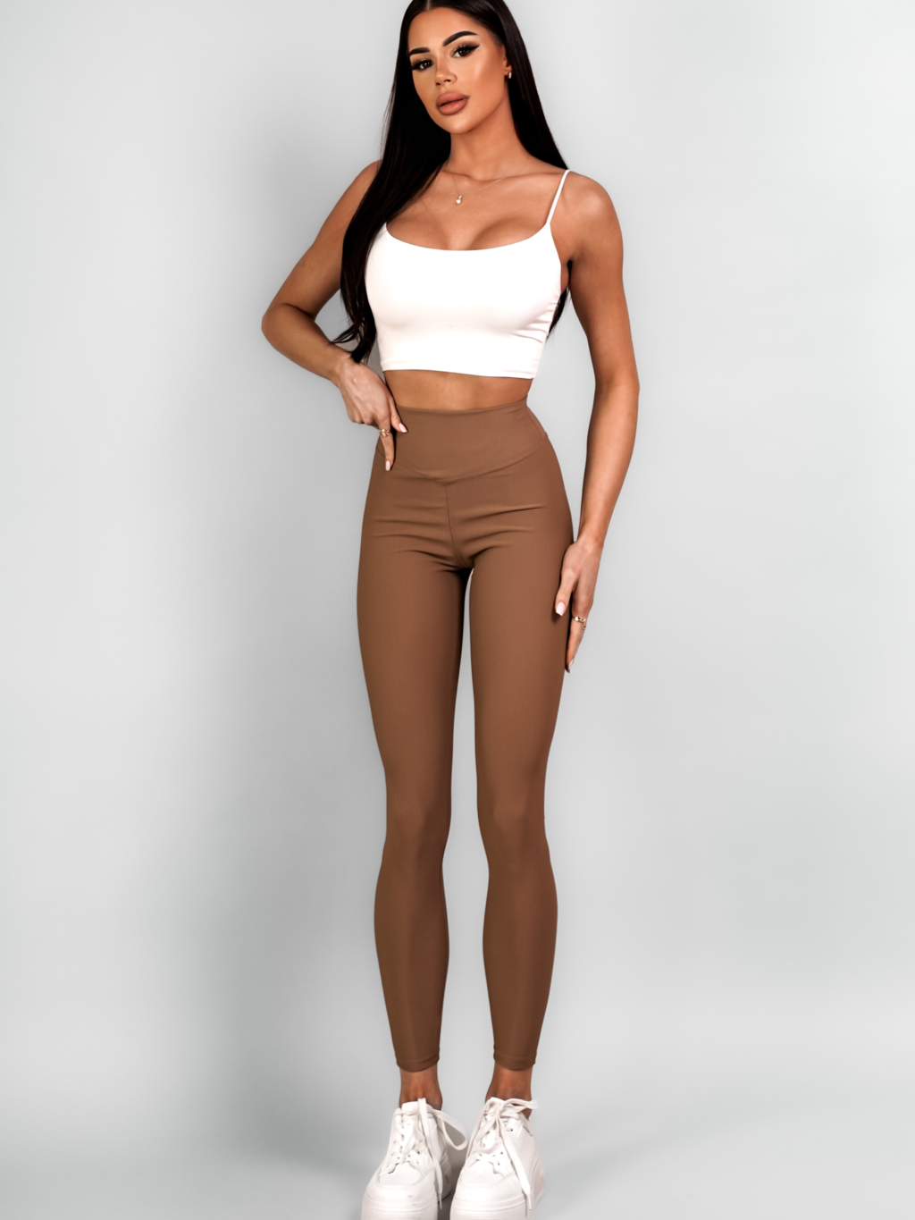 Hnědé basic sportovní elastické legíny AVOSIA
