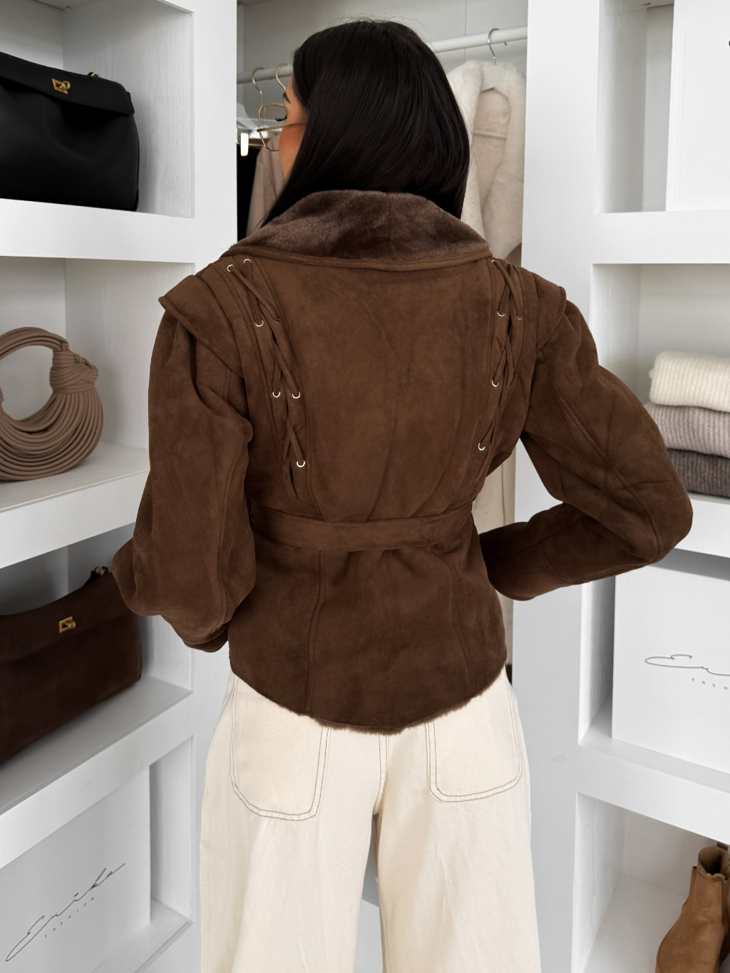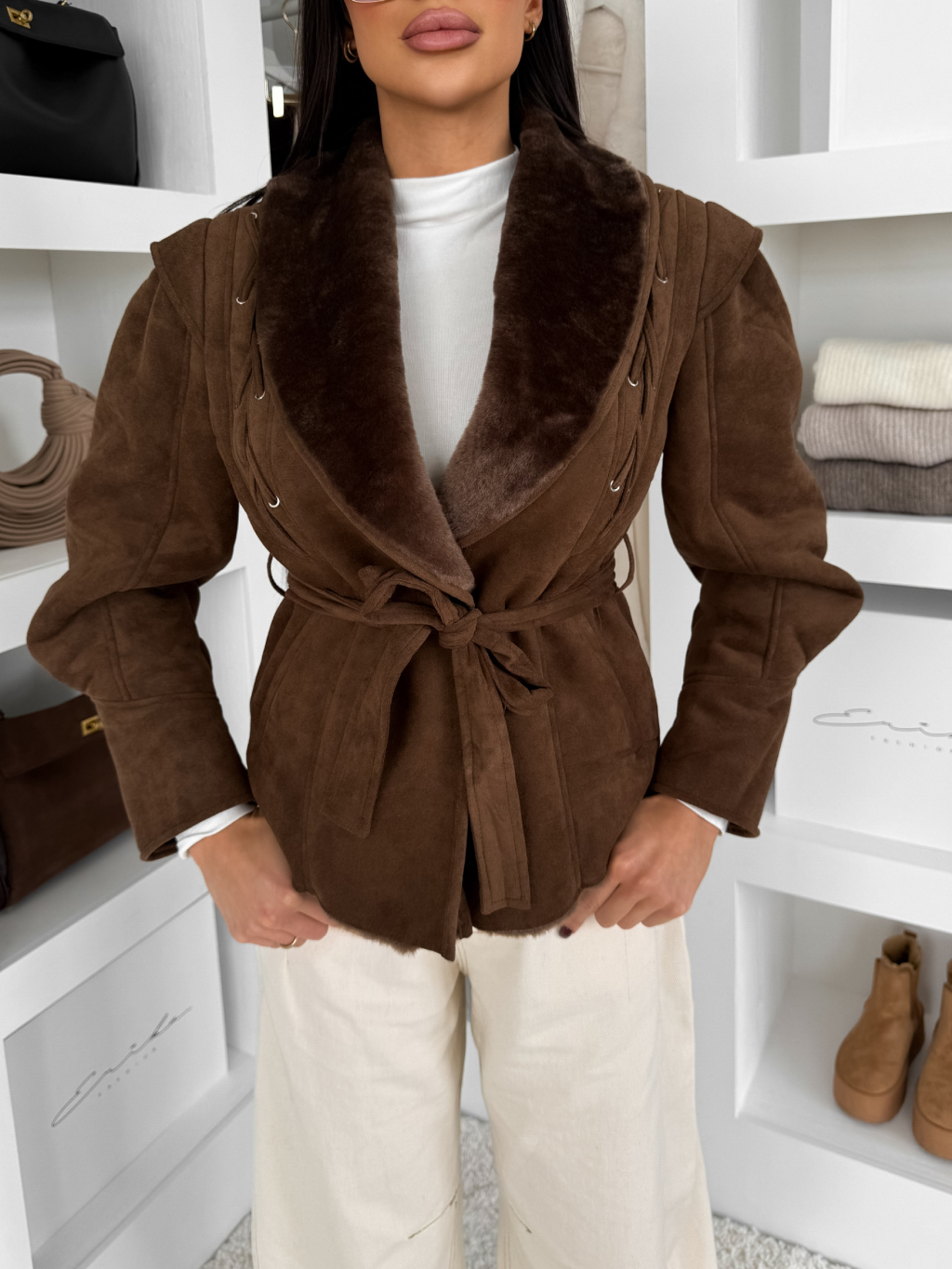 Hnědá semišová vypasovaná bunda LAVETON s kožíškem