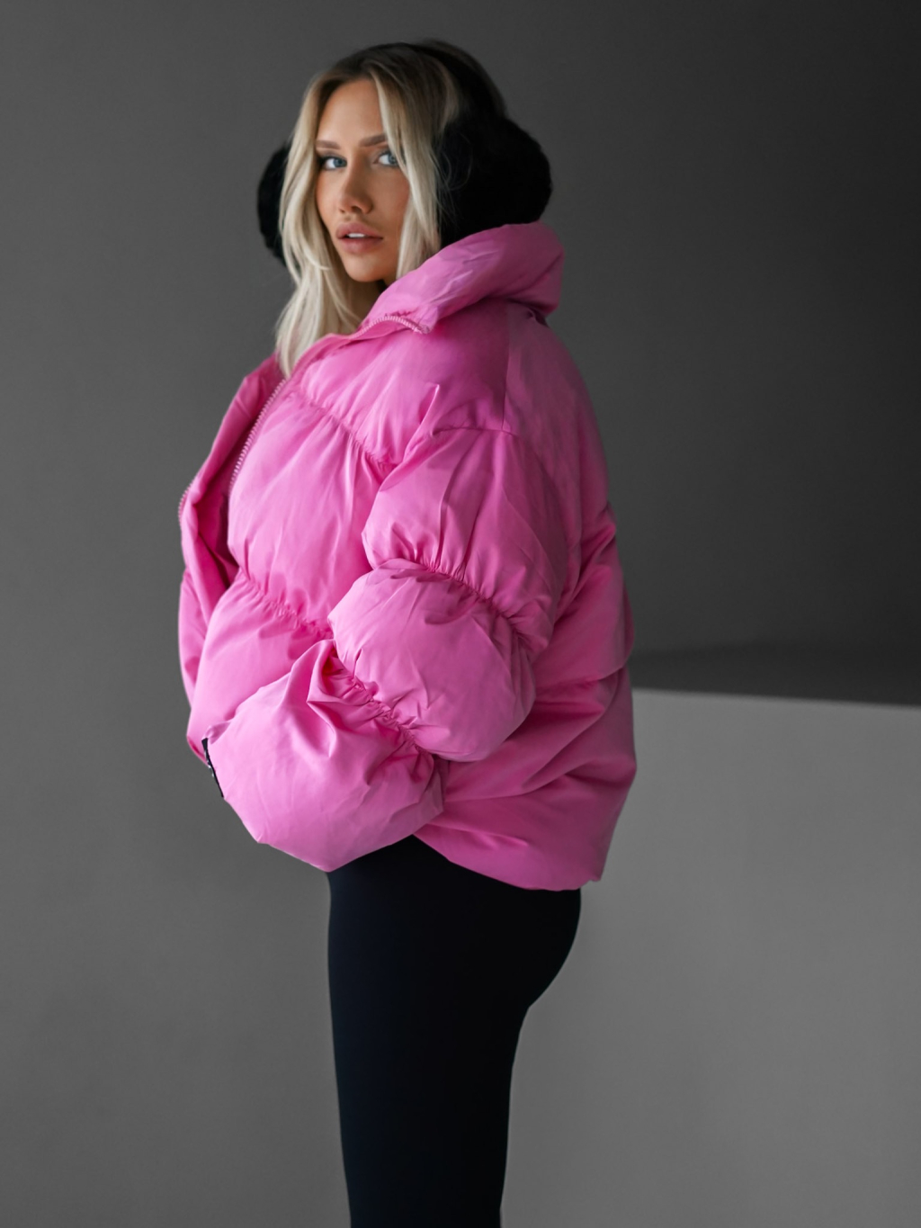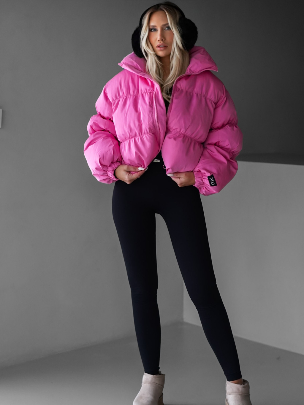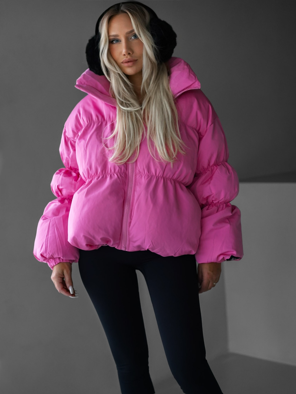 Růžová zimní prošívaná puffy krátká bunda DEZIDER