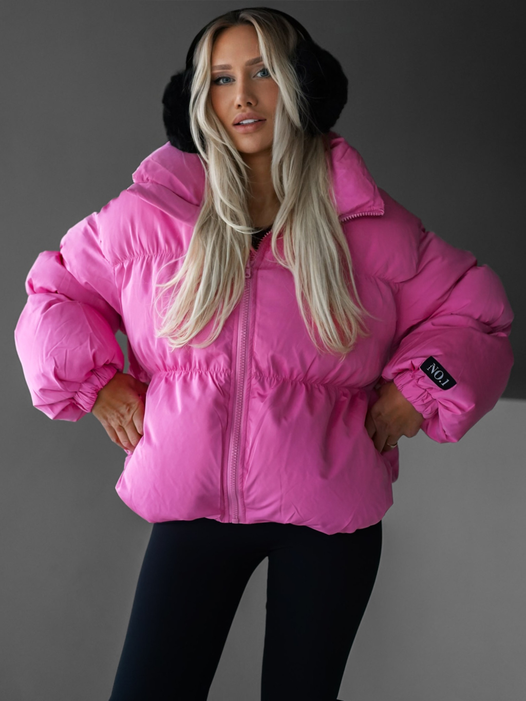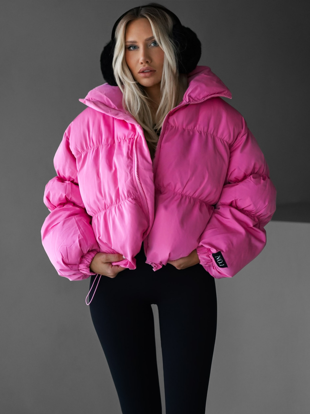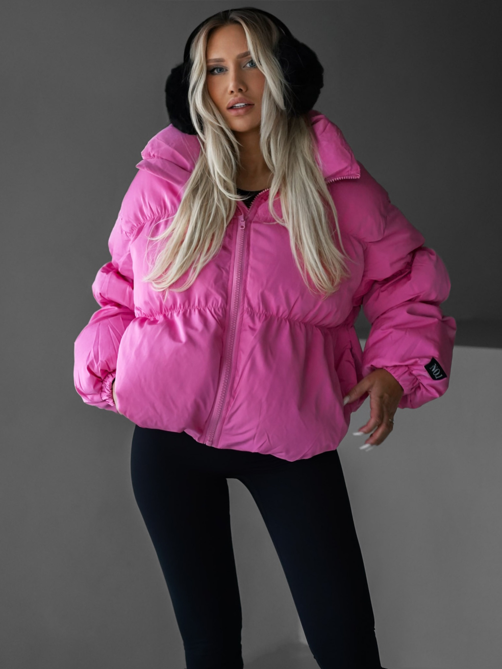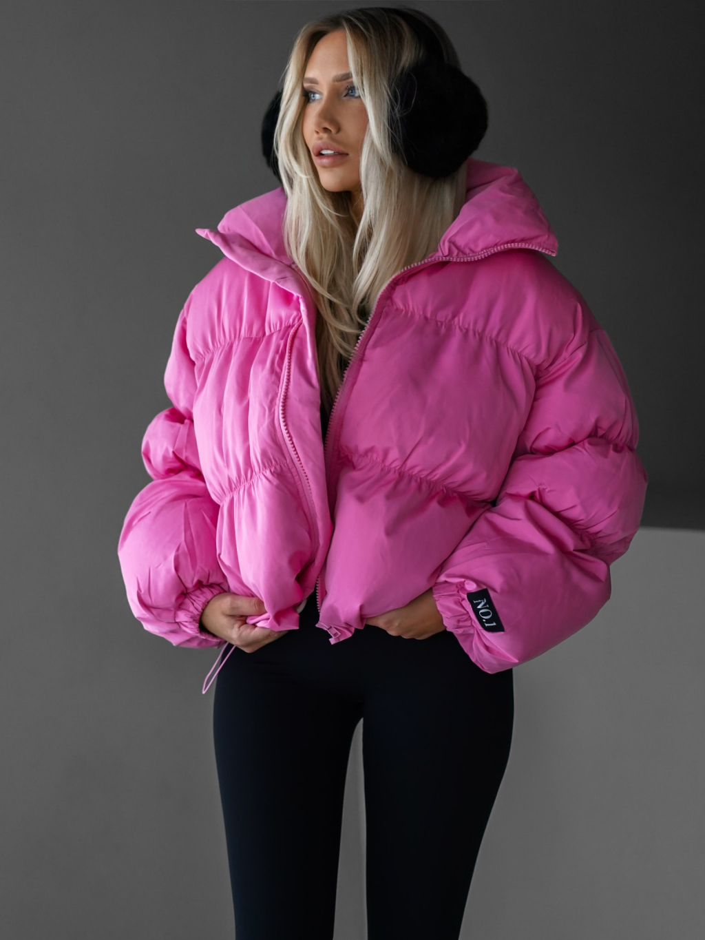 Růžová zimní prošívaná puffy krátká bunda DEZIDER