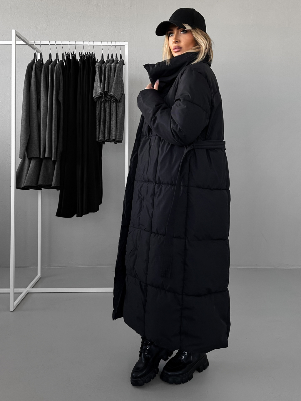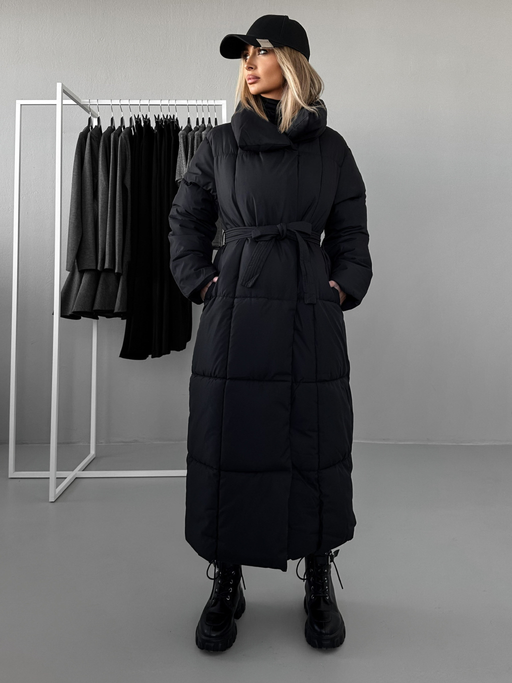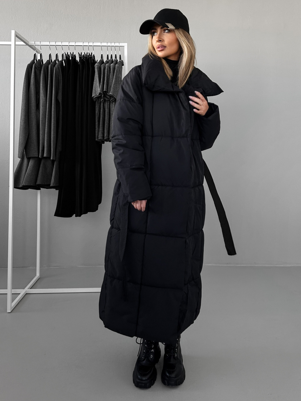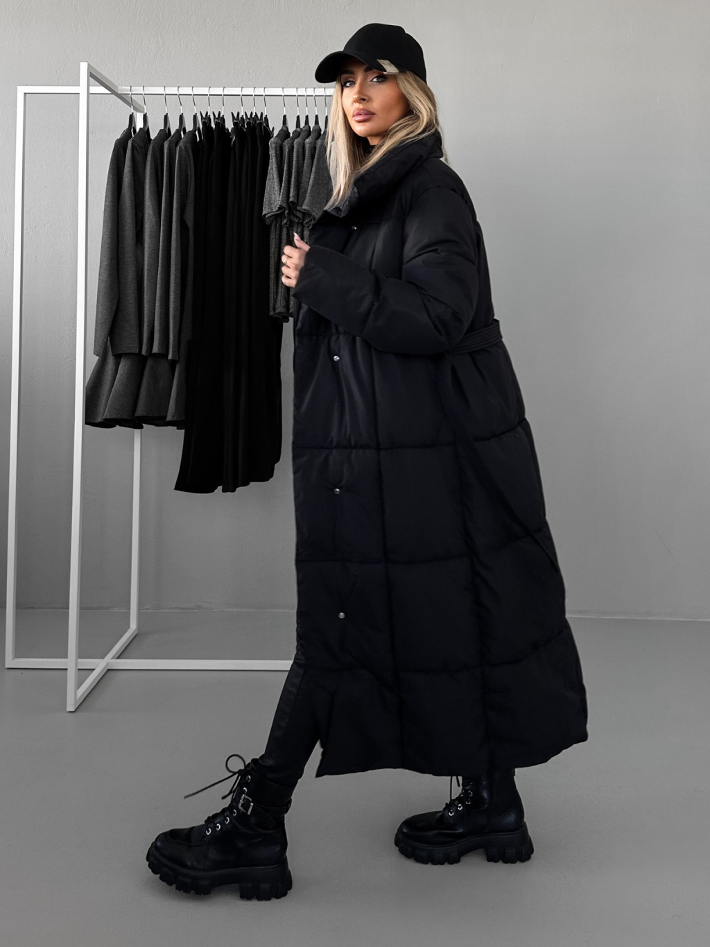 Černý dlouhý zimní prošívaný kabát ANTRONIE