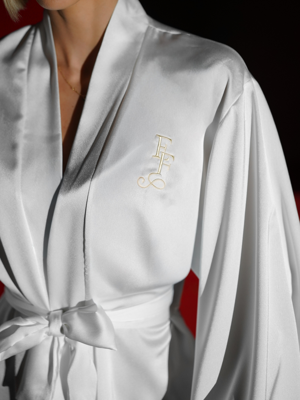 Bílý saténový župánek RIALA s dlouhým rukávem